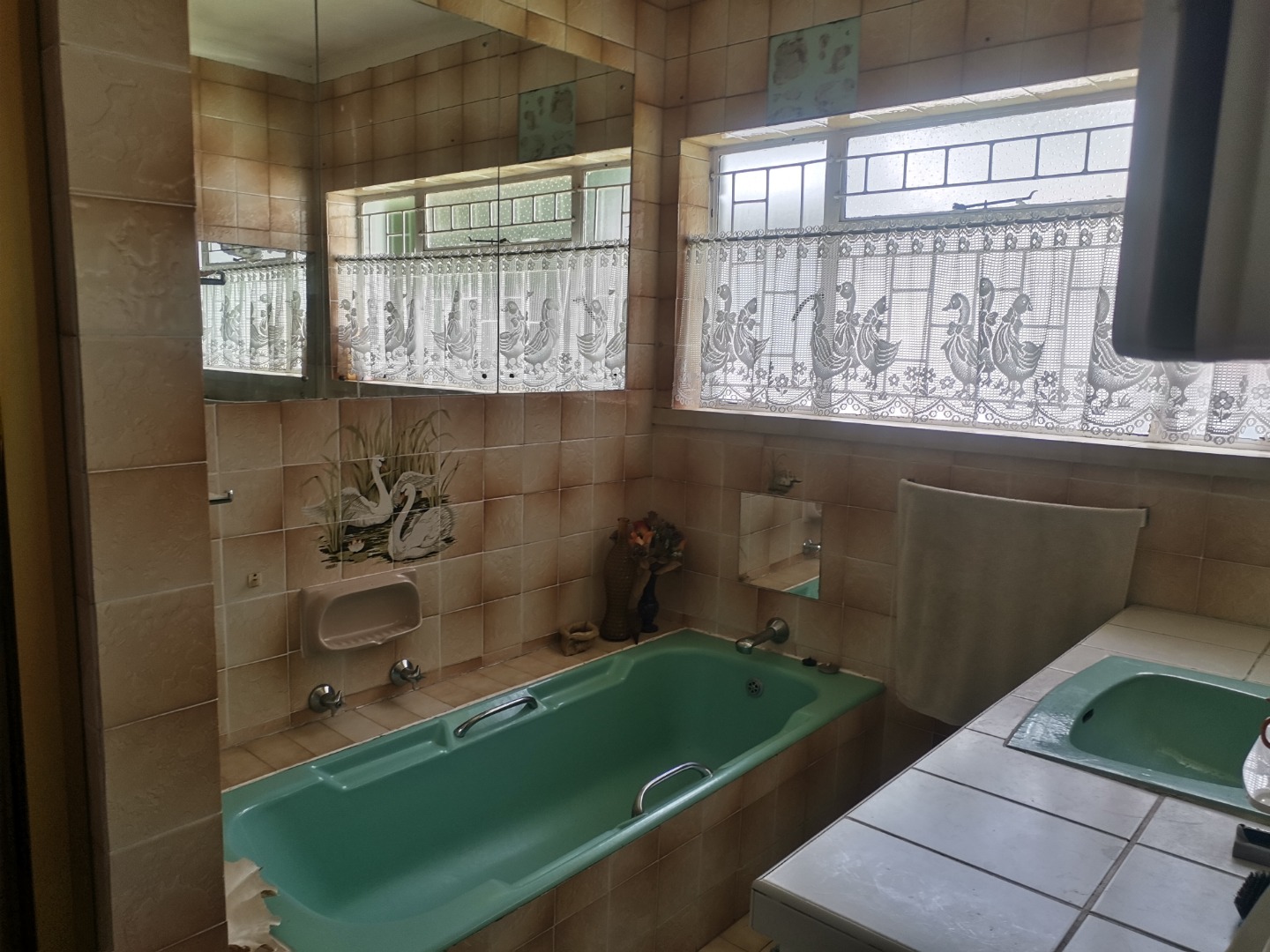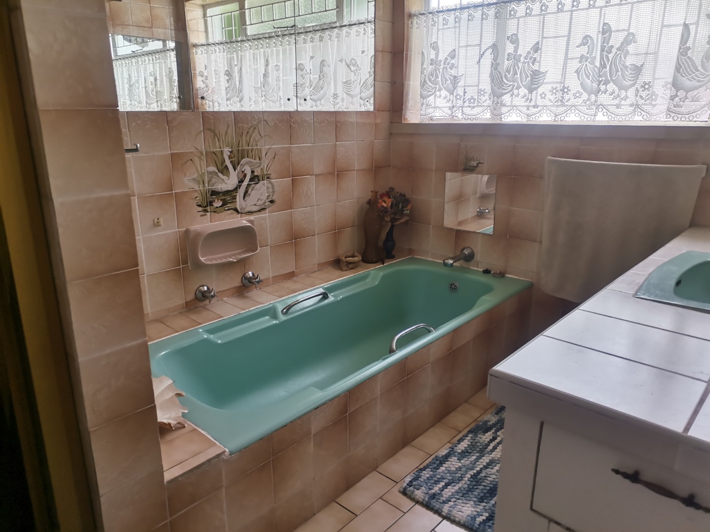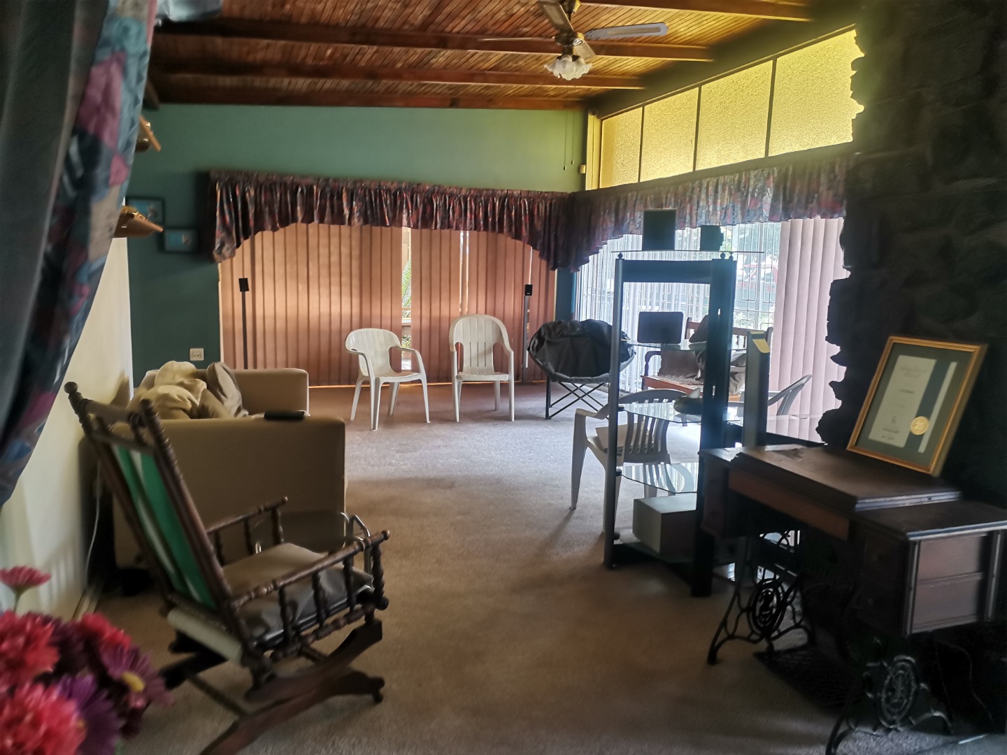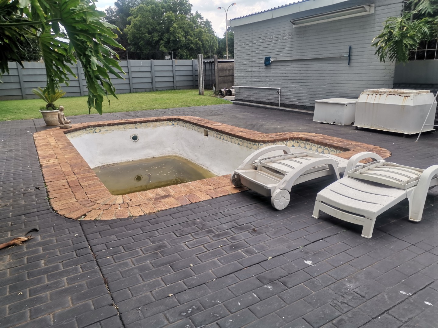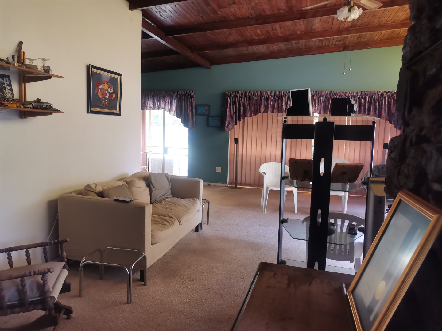 Outdoors, the generous 1175 sqm erf provides a substantial green lawn and established garden beds, perfect for relaxation and outdoor activities. Practical covered parking is available via a functional carport, capable of accommodating multiple vehicles, ensuring convenience for residents and visitors alike.
