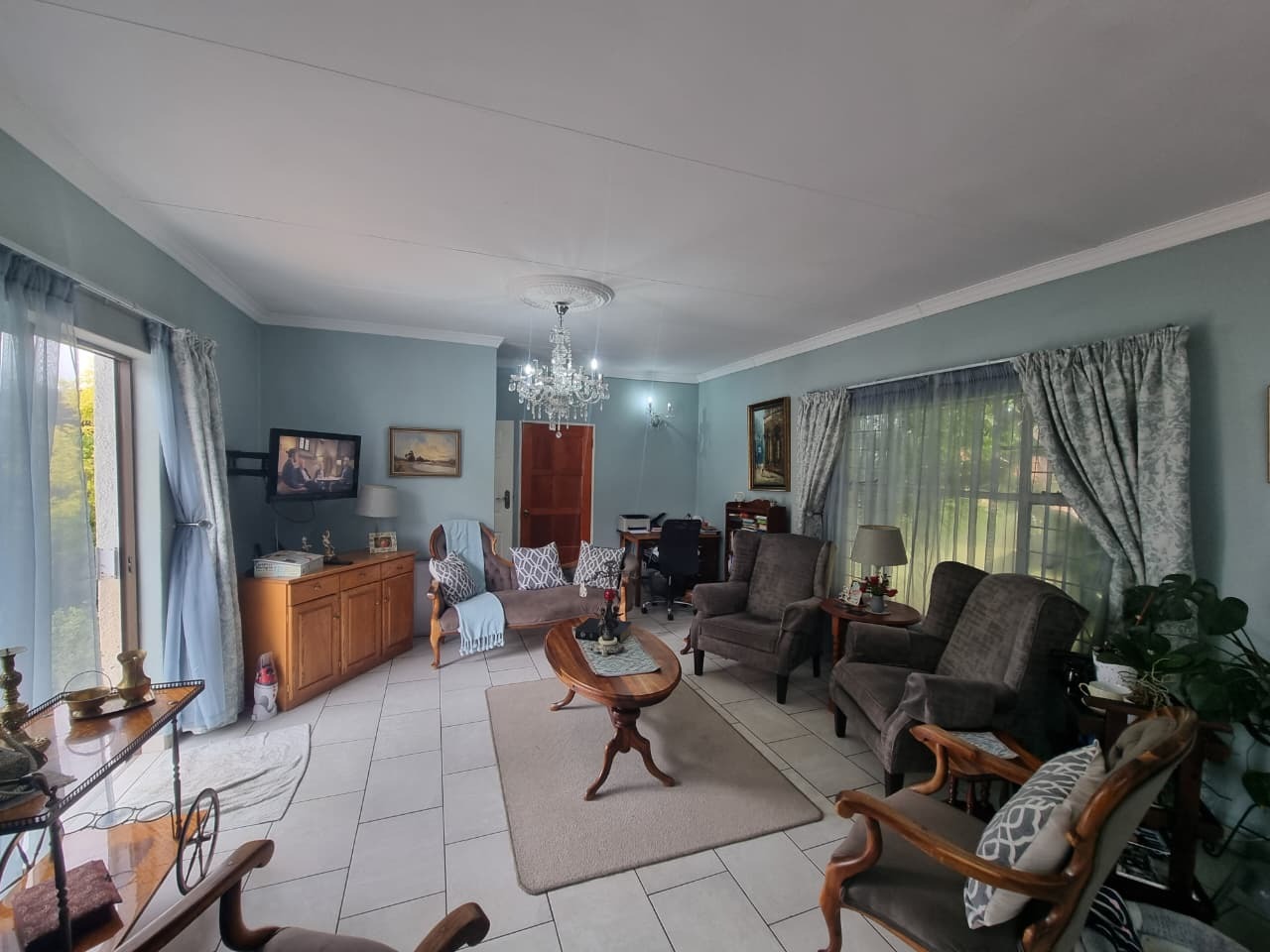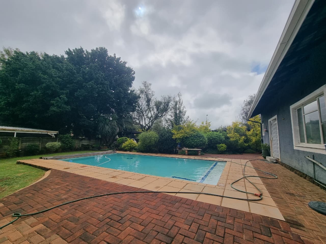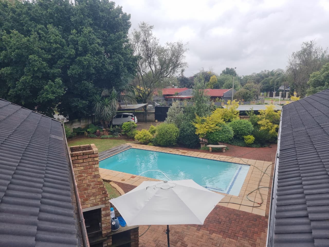 Step outside to a spacious outdoor setting designed for relaxation and entertainment. The property includes a well-maintained garden, a swimming pool, and a built-in braai area under an awning—ideal for hosting family and friends. Additional features include two carports with space to accommodate up to four vehicles, paving throughout, outside toilets, and pet-friendly surroundings.